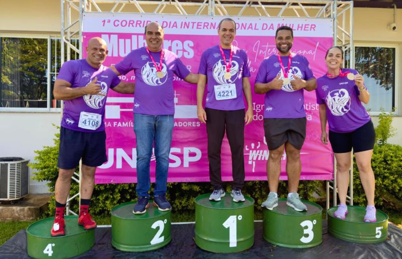 integração e celebração durante a realização da 1ª Corrida do Dia Internacional da Mulher, evento que reuniu